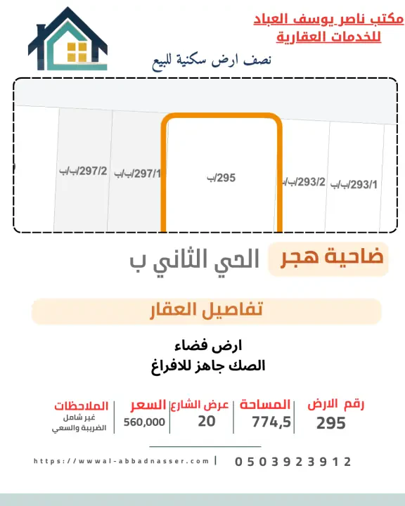 طلب اتصال | أرض للبيع في هجر الثاني | مكتب ناصر يوسف العباد للخدمات العقارية