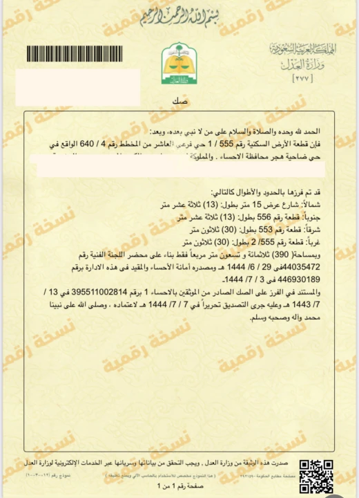 رقم قطعة الارض :- 555